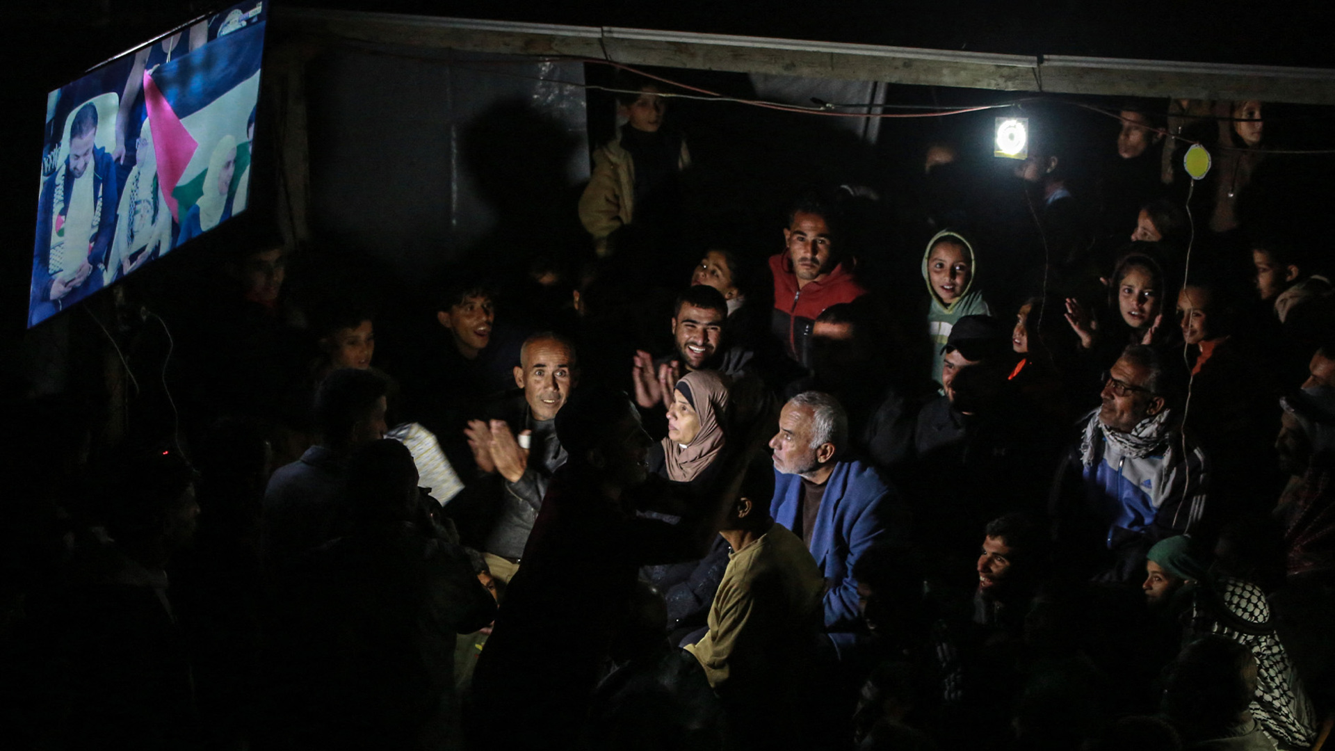 Video shows crowds in Gaza celebrating after Palestine qualified for the Arab Cup quarter-finals. Palestinians waved flags, chanted songs and gathered around screens in a rare moment of joy amid the ongoing devastation.